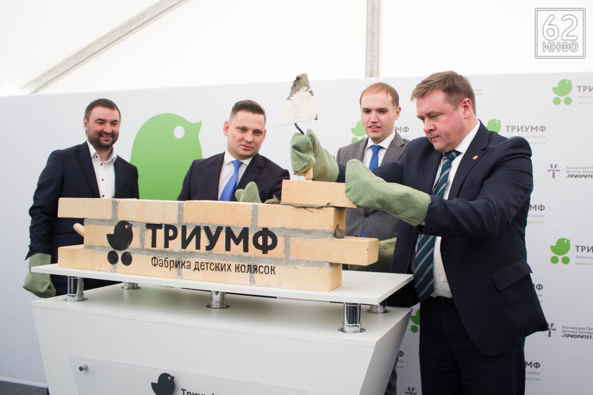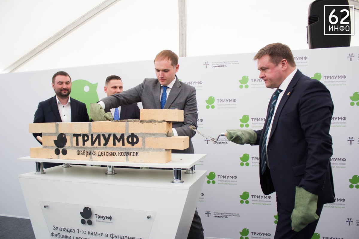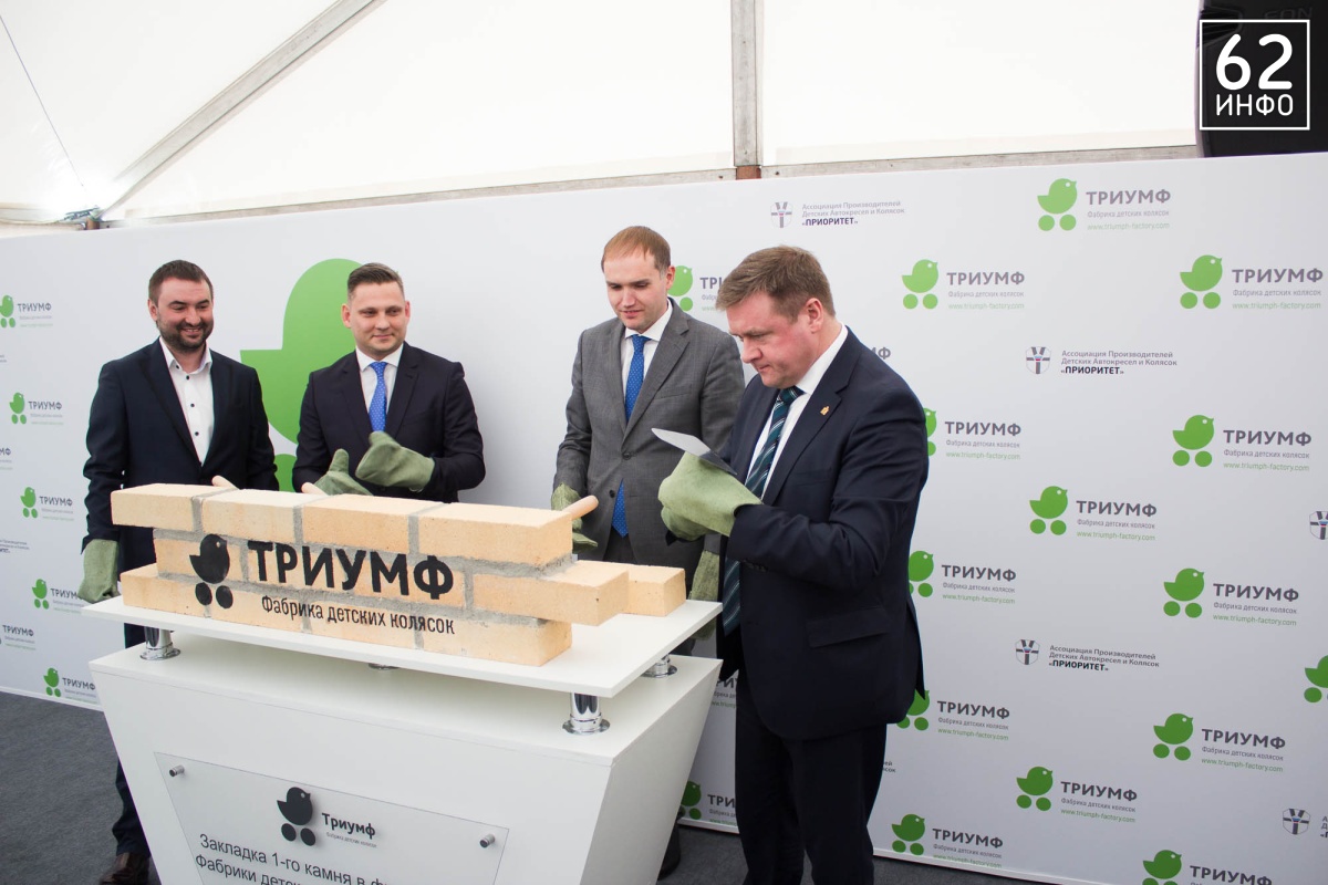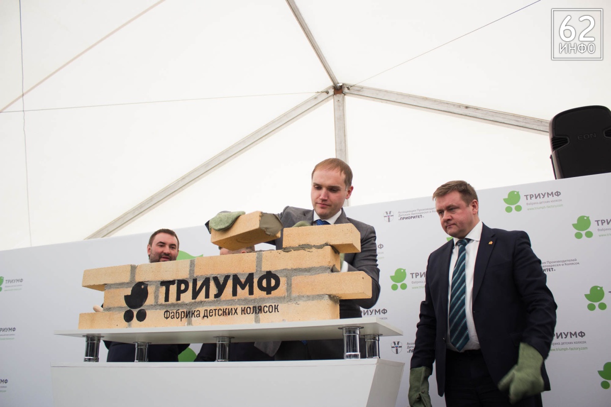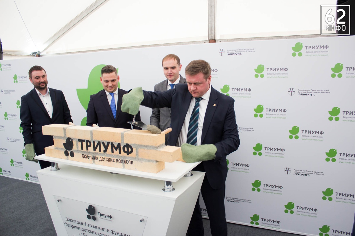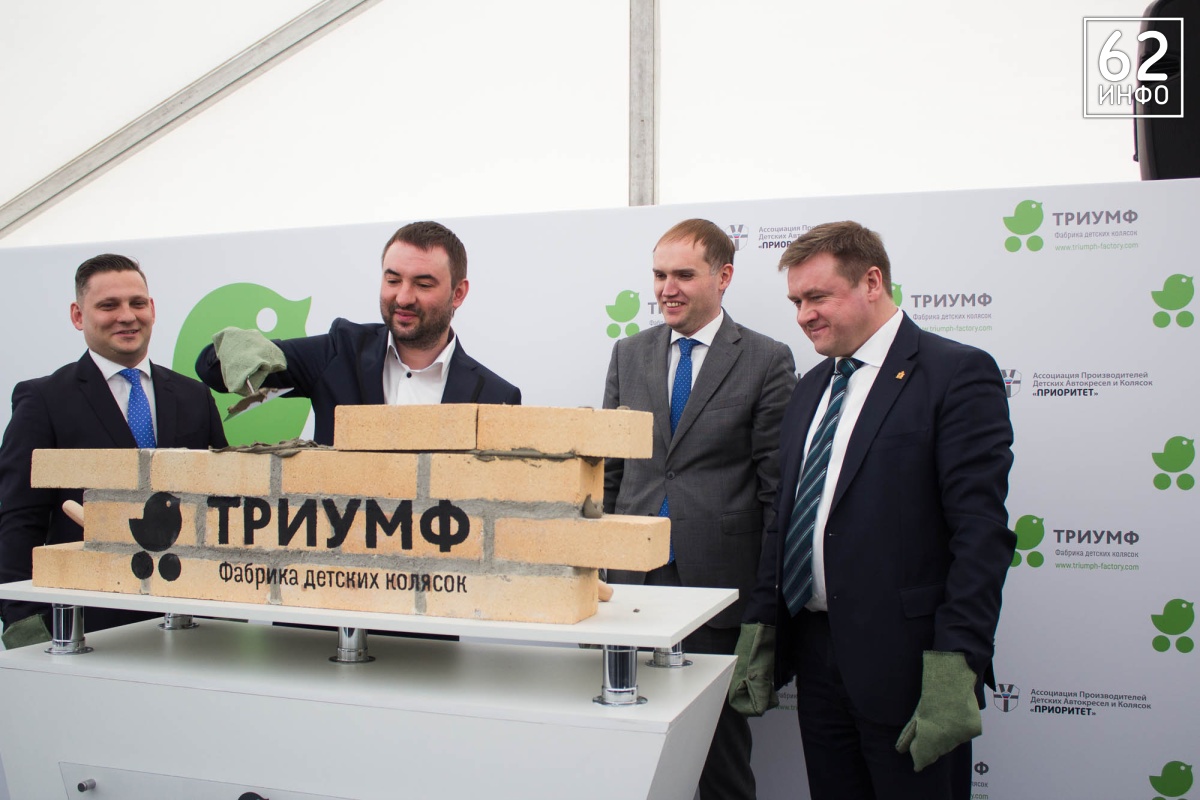 В четверг, 15 марта, состоялась церемония закладки первого камня в основание Фабрики детских колясок «Триумф». Это первый завод полного цикла в стране по производству колясок. Кирпичи в символичном фундаменте заложили губернатор Рязанской области Николай Любимов, председатель Ассоциации производителей детских автокресел «Приоритет» Михаил Стройков, зампред Ассоциации Иван Никитичев, директор департамента развития промышленности социально-значимых товаров министерства торговли и промышленности РФ Дмитрий Колобов.