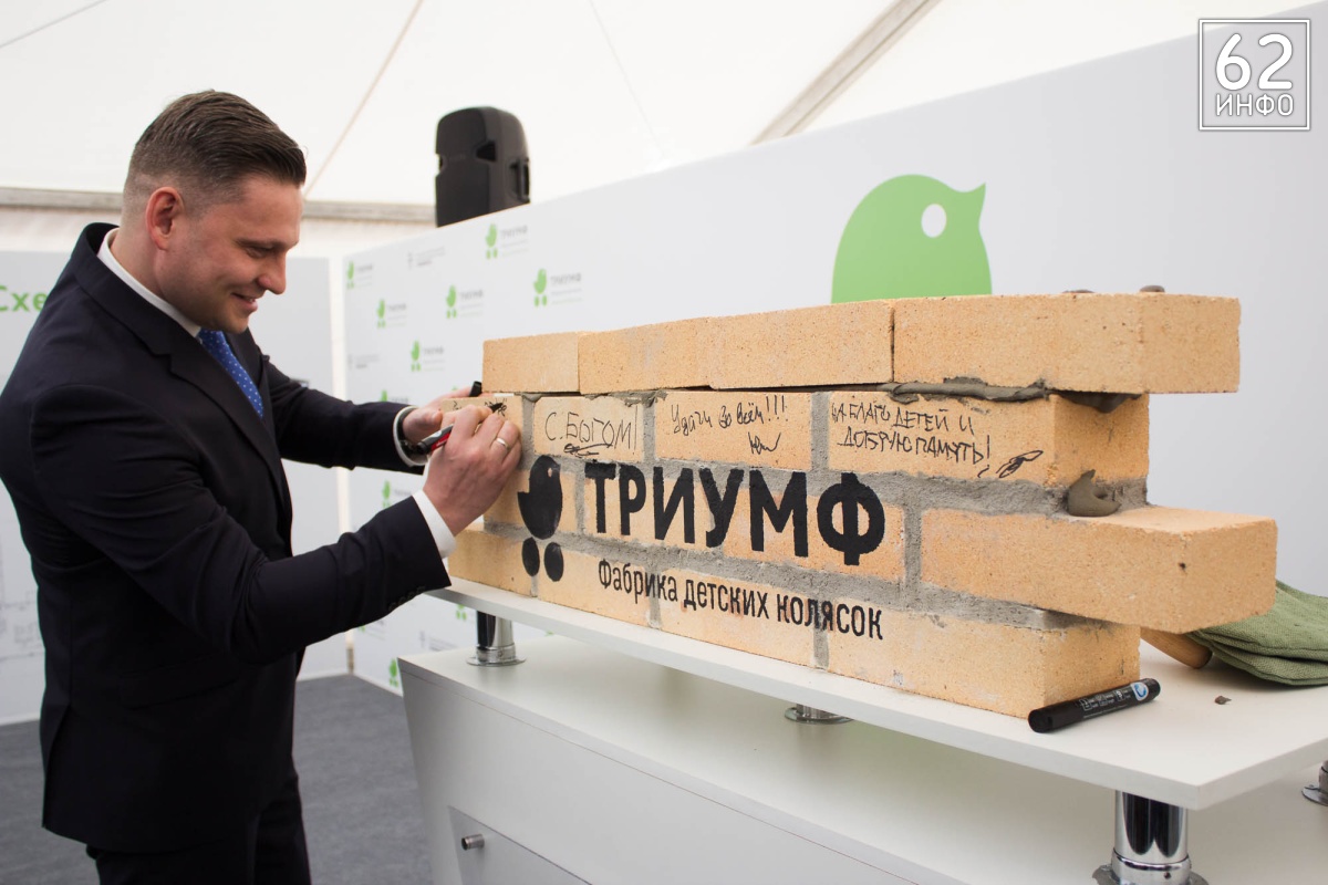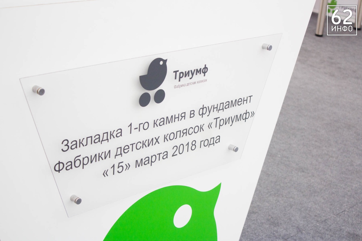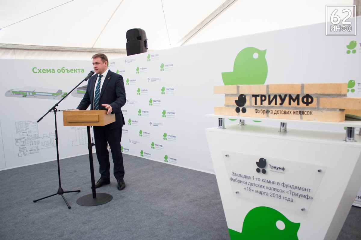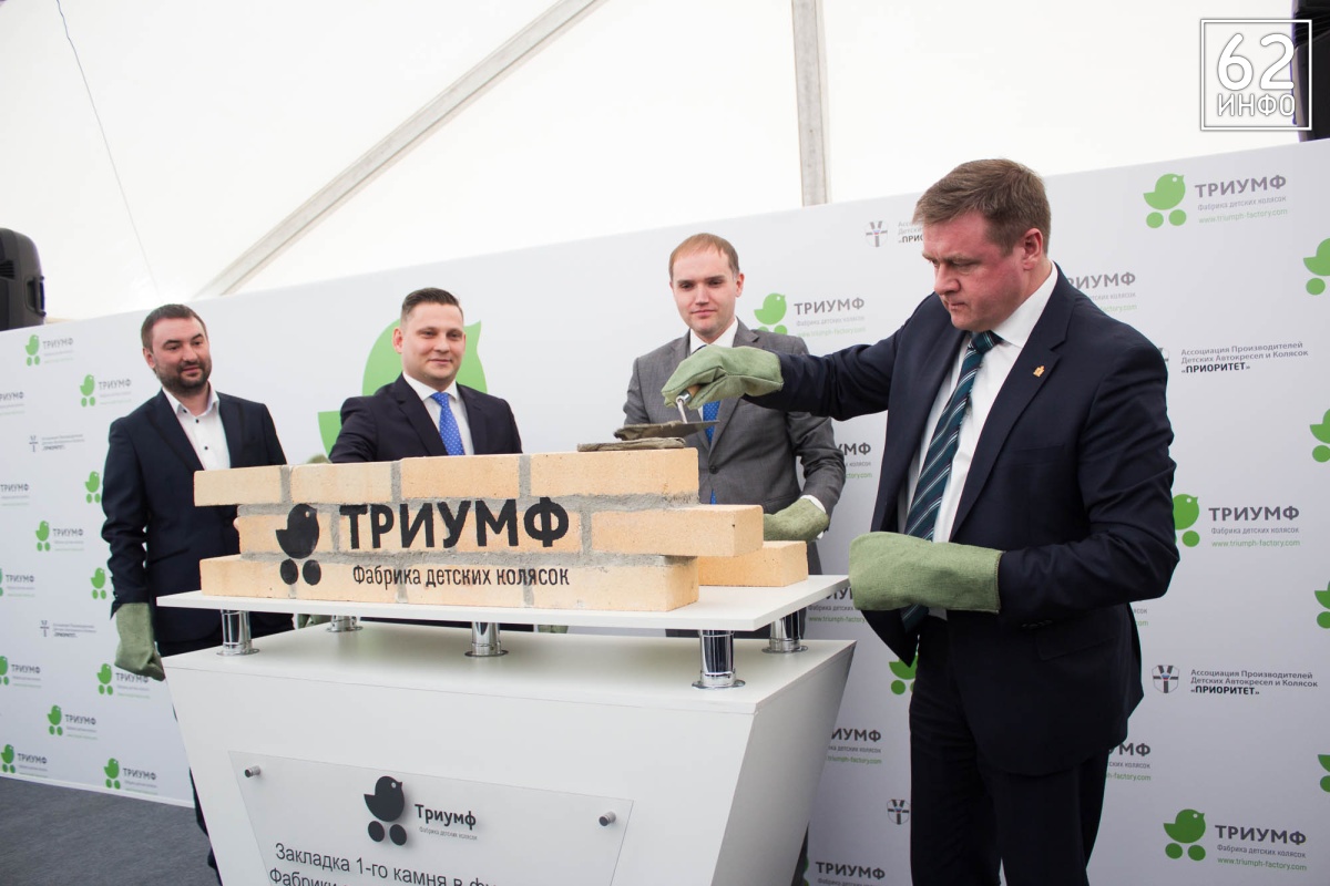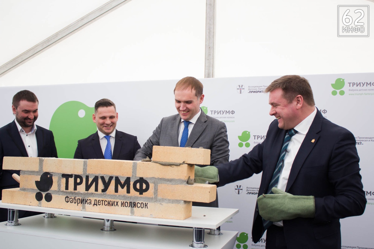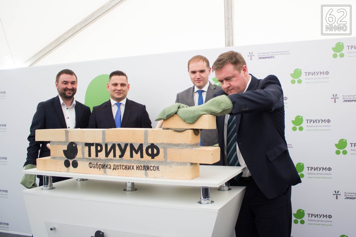 В четверг, 15 марта, состоялась церемония закладки первого камня в основание Фабрики детских колясок «Триумф». Это первый завод полного цикла в стране по производству колясок. Кирпичи в символичном фундаменте заложили губернатор Рязанской области Николай Любимов, председатель Ассоциации производителей детских автокресел «Приоритет» Михаил Стройков, зампред Ассоциации Иван Никитичев, директор департамента развития промышленности социально-значимых товаров министерства торговли и промышленности РФ Дмитрий Колобов.