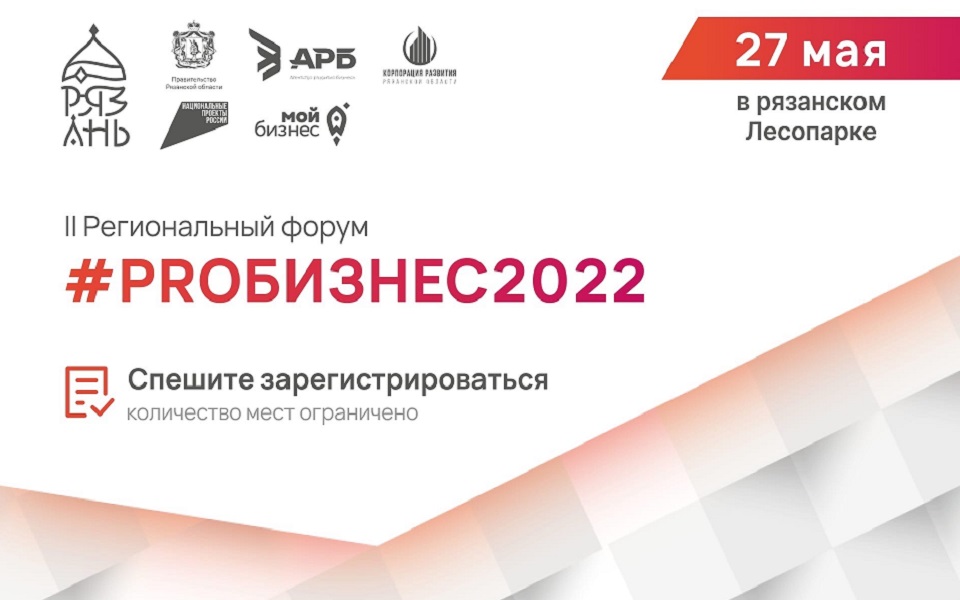 В Рязанской области подходит к концу приём заявок от желающих принять участие в форуме #PROБИЗНЕС2022. Зарегистрировались уже более 350 предпринимателей. II Региональный форум в нашем регионе организован Агентством развития бизнеса Рязанской области.