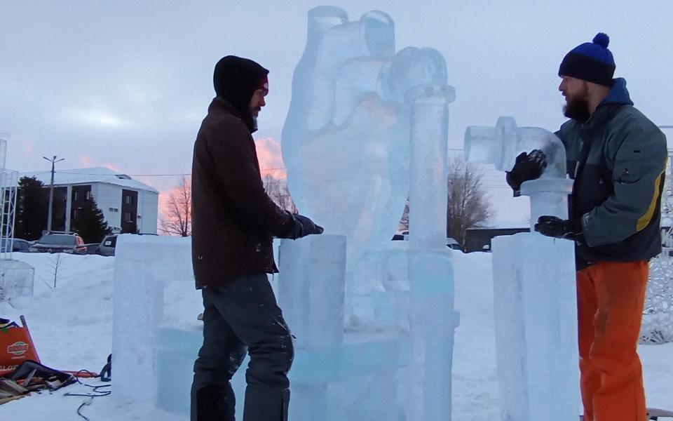 Авторы работали в парке «Нефтяников» в течение недели. Братья Мистрюковы победили со скульптурой ледяного сердца, которое подпитывали трубы нефтепровода.