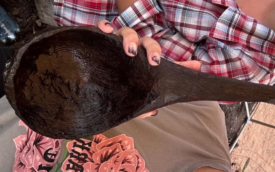 Археологи нашли на Введенском раскопе отлично сохранившийся черпак первой половины XV. Об этом сообщили в пресс-службе РИАМЗ.