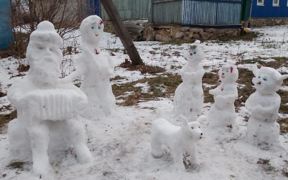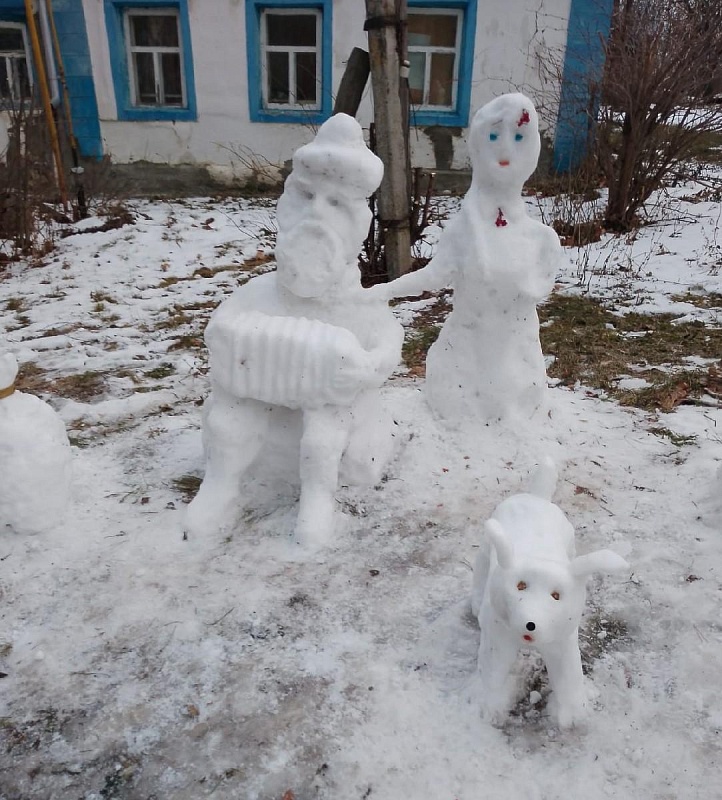 В Пронском районе скульптор Евгений Цунаев вылепил из снега гармониста с хороводом. Об этом пишет ИД «Пресса».