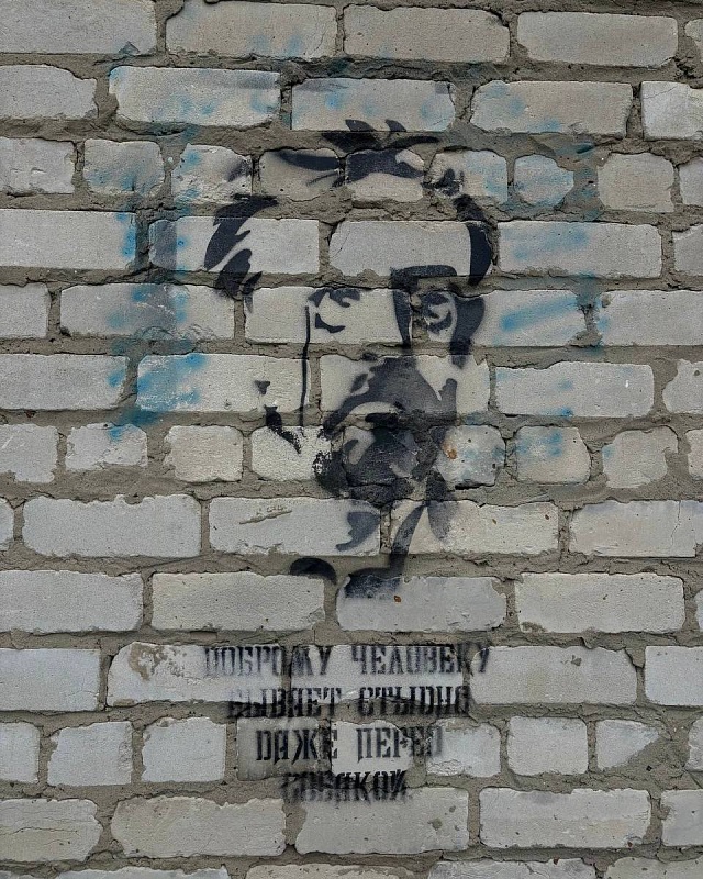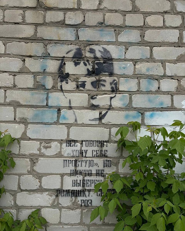 Недалеко от мясокомбината появились граффити со взглядами русских классиков и их цитатами, сообщает ТГ-канал «Твиглс | медиа Рязань».