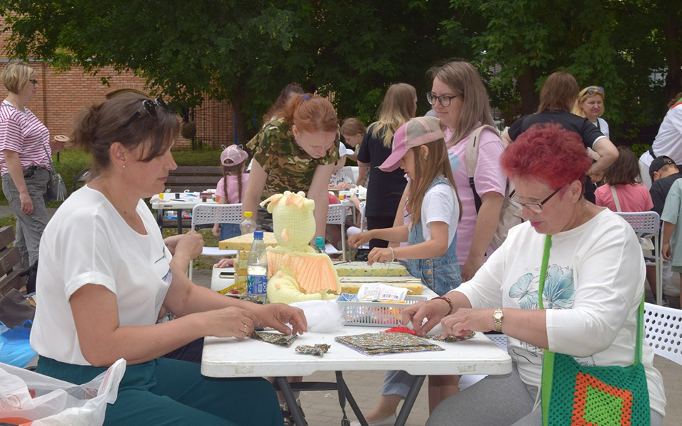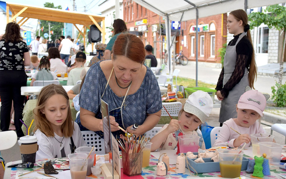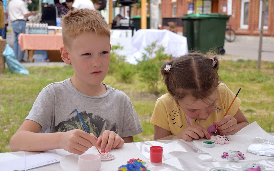 Для детей организованы игры и мастер-классы от Клепиковской дружины. Взрослые могут попробовать силы в росписи пряников, глиняных изделий и плетении браслетов. Особый интерес вызвала двухметровая сковорода, на которой готовят перловую кашу с грибами.