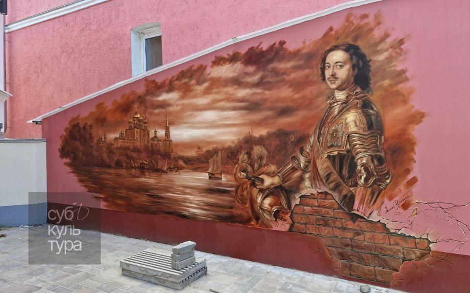 Мурал появился в качестве украшения для здания сувенирной лавки при музее «Рязанские тайны Петра I». На изображении российский царь представлен на фоне Рязанского кремля и кораблей.