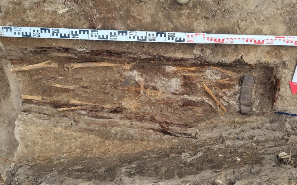 Археологи предположили, что в одной могиле были похоронены мать и маленький ребёнок. На черепе матери нашли фрагмент плотной ткани с растительным орнаментом. Предполагают, что это остатки головного убора замужней женщины — волосника.