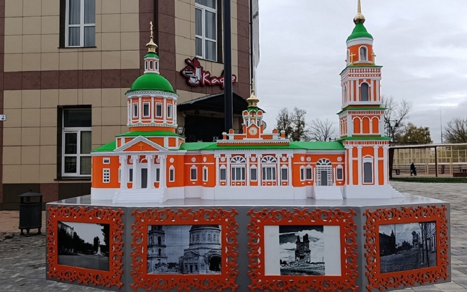 Сегодня, 10 октября, на улице Ленина в Скопине вновь появился макет Свято-Троицкого собора.
