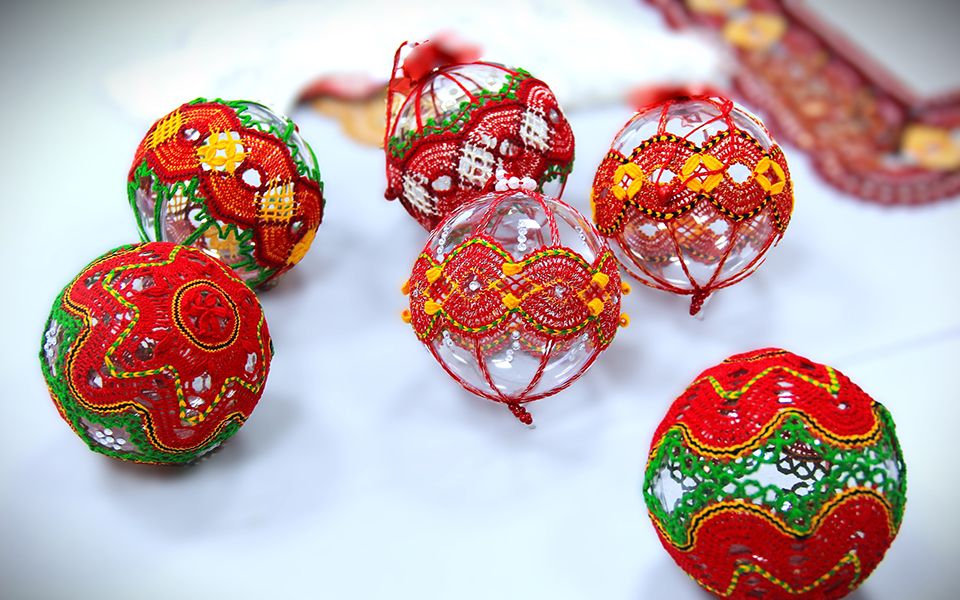 Особое внимание уделили новогодним коллекциям предприятий «Кадомский вениз» и «Труженица». Среди представленных работ — праздничные скатерти, столешники, кружевные воротники, ажурные колье и ёлочные украшения.