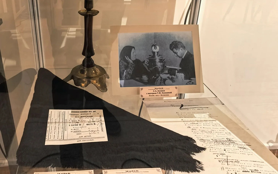 В экспозиции собраны фотографии, документы, рукописи стихов и прижизненные издания. Также здесь можно рассмотреть подлинные вещи начала прошлого века. Гостям расскажут о ключевых этапах биографии Есенина, его поездках по России и за границу, а также о роли поэта в создании литературного течения имажинистов.