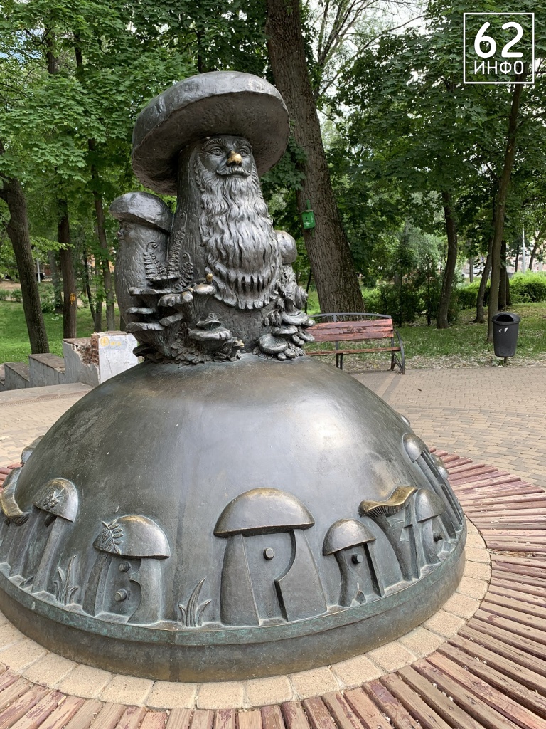 Следующая фигура квеста – самая «старая» и большая. «Грибы с глазами» расположена в Нижнем городском саду. Её установили ещё в 2013 году. Благодаря QR-кода можно узнать о значениях поговорки «А у нас в Рязани грибы с глазами». Их несколько.
