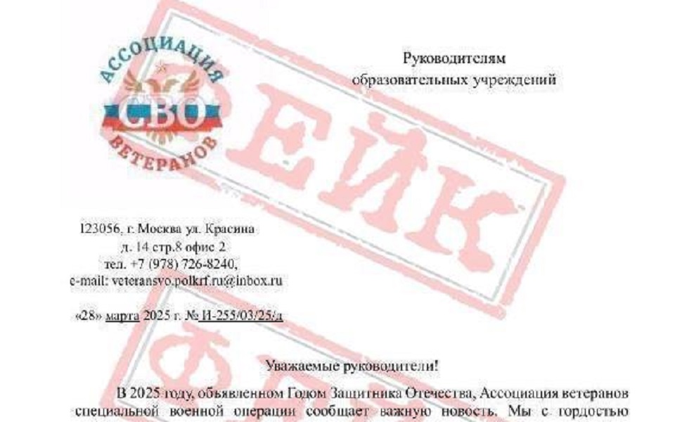 Под видом письма Ассоциации ветеранов СВО о мерах поддержки распространяется фишинговое письмо.