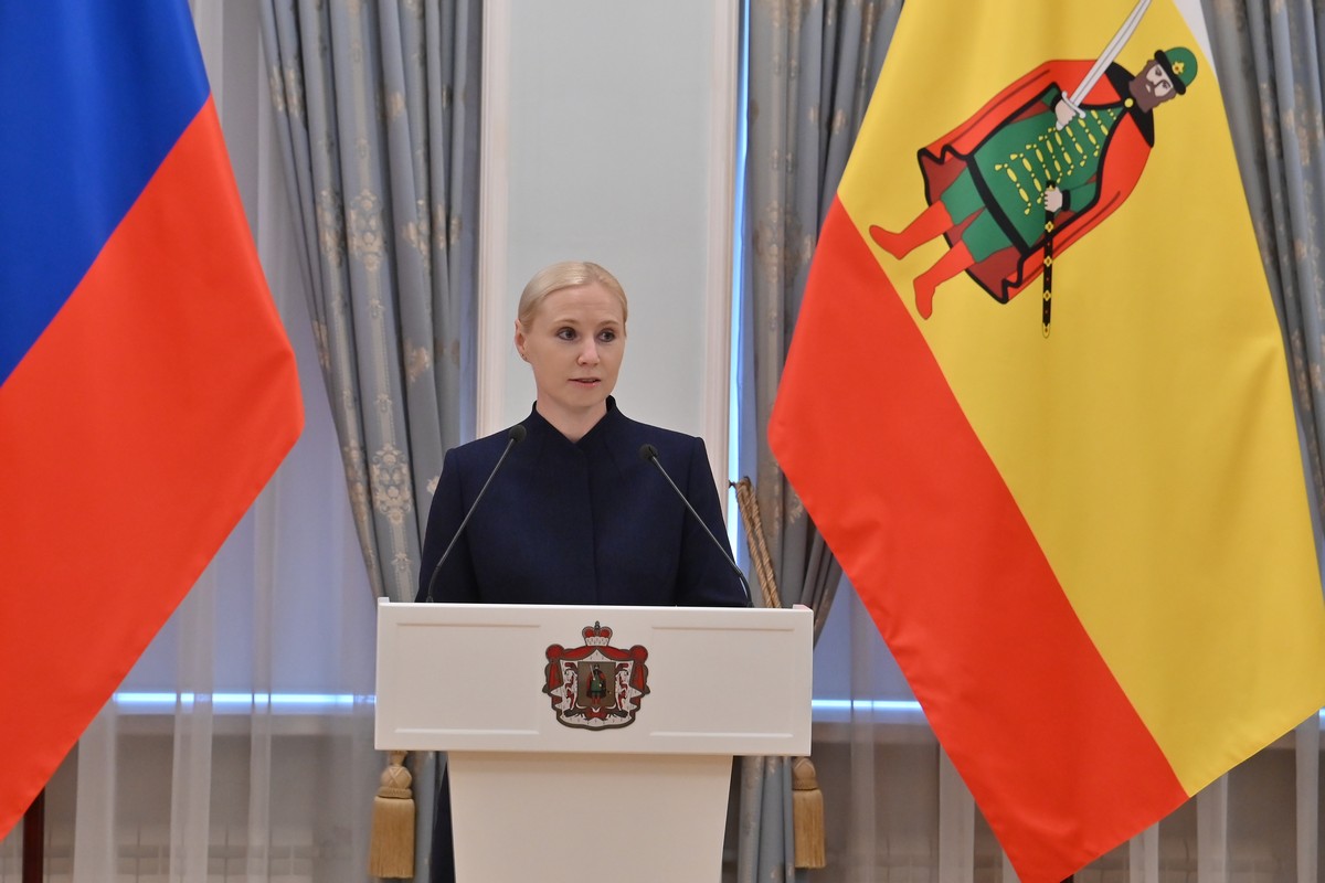 От имени губернатора участников церемонии поздравила первый зампред правительства Рязанской области Анна Рослякова. В своей поздравительной речи она пожелала обучающимся не останавливаться и поблагодарила, что выбрали учёбу в рязанских вузах и ссузах.