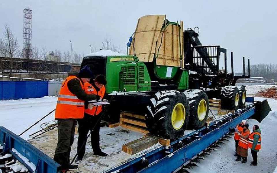 Из Рязанской области на Дальний Восток по железной дороге отправился транспортер-погрузчик для лесозаготовки.