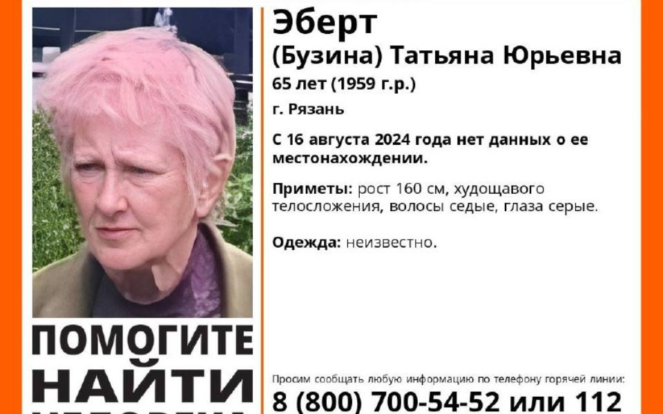 Волонтёры поисково-спасательного отряда «ЛизаАлерт» сообщили о начале поисков 65-летней Татьяны Эберт (Бузина). Сообщение опубликовано в телеграм-канале сообщества.