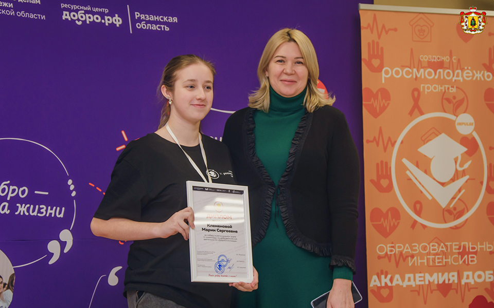 В Рязани подвели итоги областного этапа «ДоброОлимпиады». Министр образования региона Ольга Прушковская наградила лучших волонтёров.