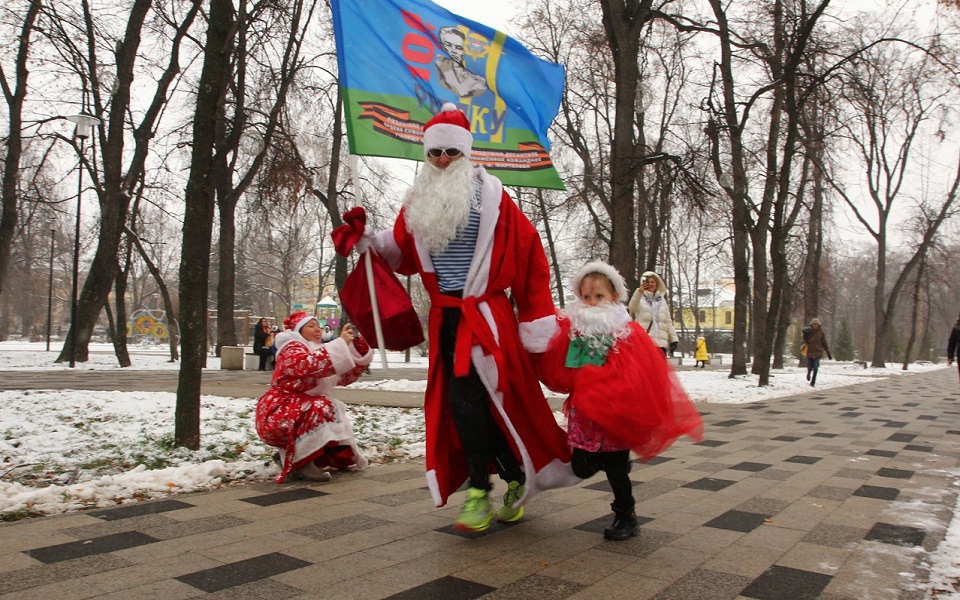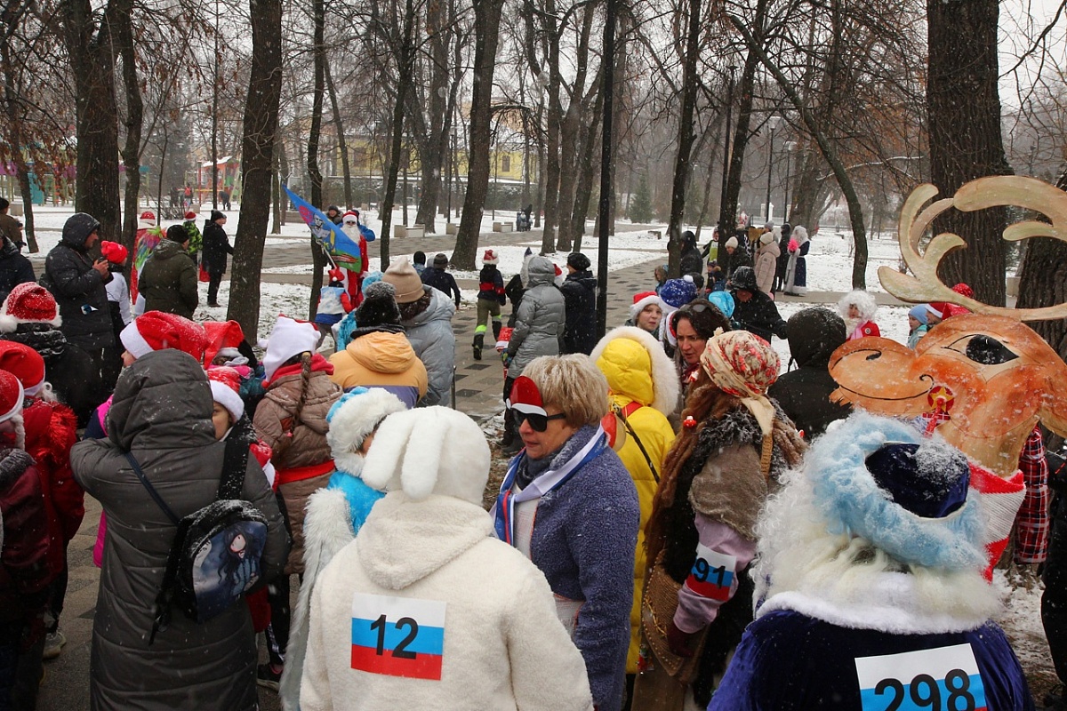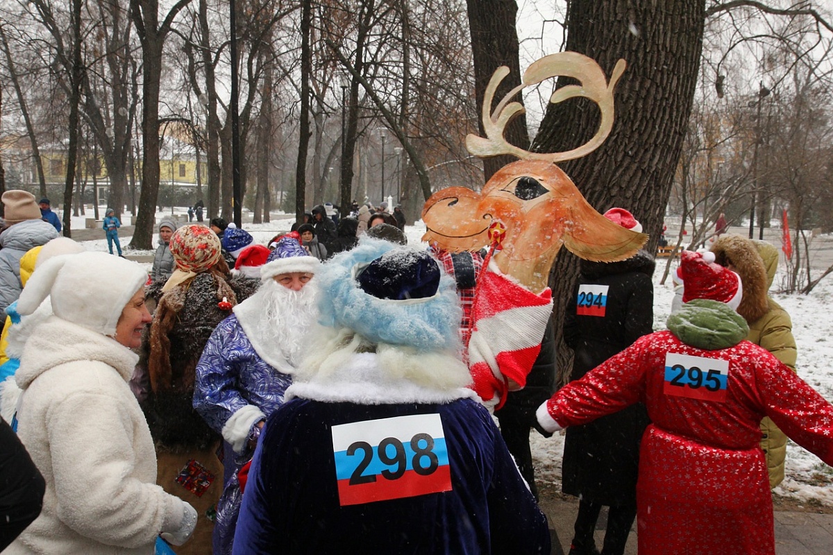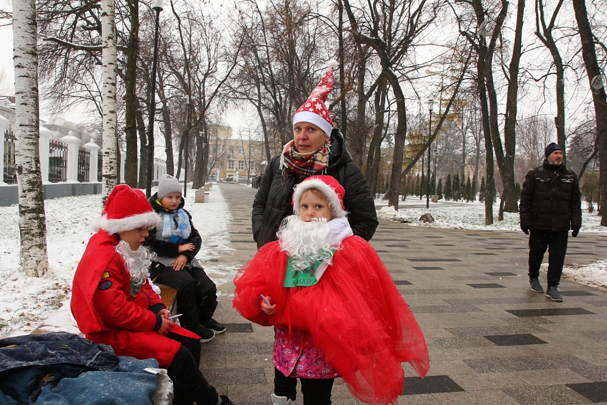 В Верхнем городском парке у мэрии собралось больше сотни участников в красочных костюмах. В толпе можно было заметить не только Дедов Морозов – была здесь и Снегурочка, и Баба Яга. Самому младшему участнику – 2 года, всего же представлено 9 возрастных групп.