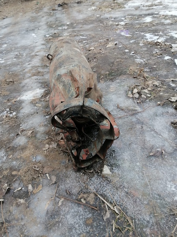 Корпус авиабомбы имел следы коррозии, хвостовое оперение деформировано, взрыватели в носовой и тыльной стороне, а также маркировочные данные отсутствовали. Боеприпас был не опасен. Находку передали полиции.