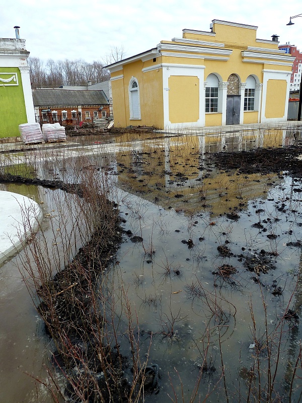 Торговый городок, который продолжают благоустраивать, подтопило половодьем. Фото с места инцидента опубликованы в паблике «Типичная Рязани».
