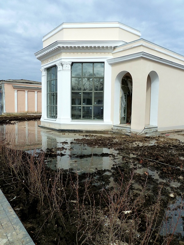 Напомним, строительство Торгового городка к 30 мая 2023 года. При этом на фотографиях можно наблюдать как рядом с затопленной территорией на поддонах высятся строительные материалы.