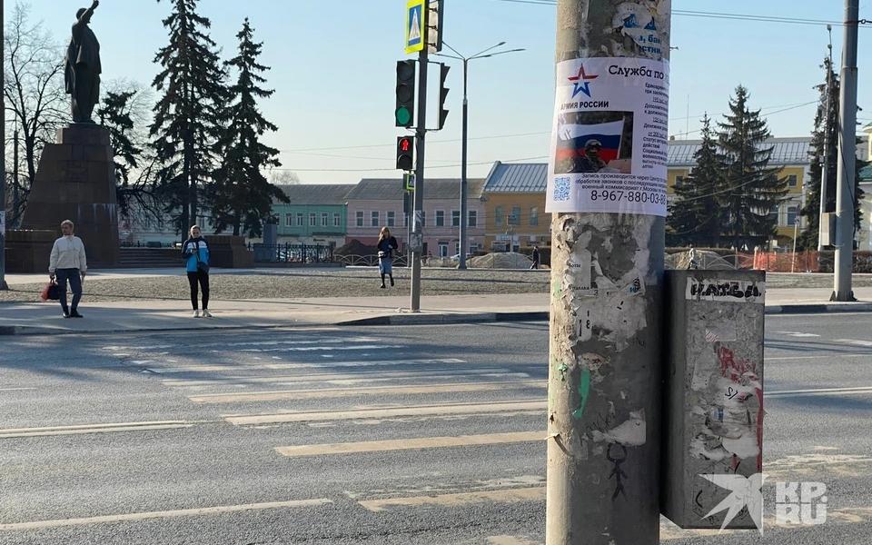 На центральных улицах Рязани появились листовки с приглашением на контрактую службу в ВС РФ. Об этом сообщает «КП-Рязань».