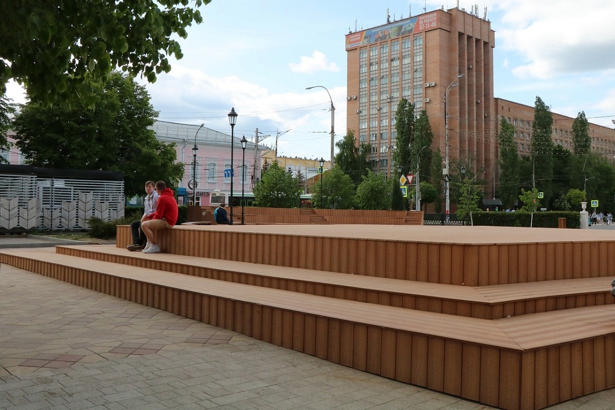 На площади Ленина завершается благоустройство — появилась детская игровая зона, 50 опор освещения, карусели, лавочки, урны, шезлонги, вазоны, рулонный газон, возвели 3 настила для отдыха — амфитеатр, сцену и подиум. Также провели подготовку перед ремонтом фонтана.