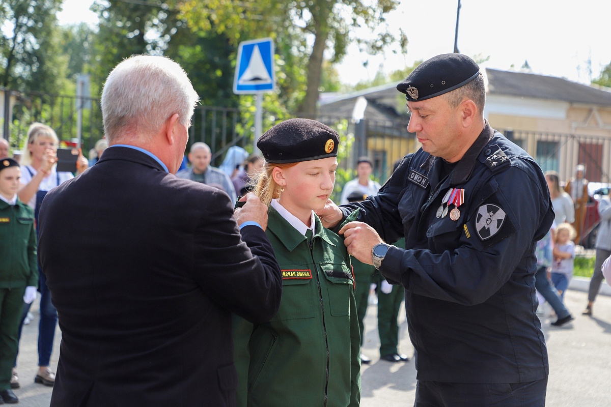 Участниками события стали ученики пятого класса «Б». Указывается, что они присягнули быть достойными гражданами своей страны, беречь и хранить традиции своего Отечества. Им вручили погоны и удостоверения.