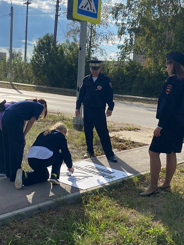 Помощь в разметке оказали волонтёры школы-интерната. У пешеходных переходов появились надписи «Посмотри налево и направо», «Возьми ребенка за руку», «Внимание на дорогу», «Сними наушники».