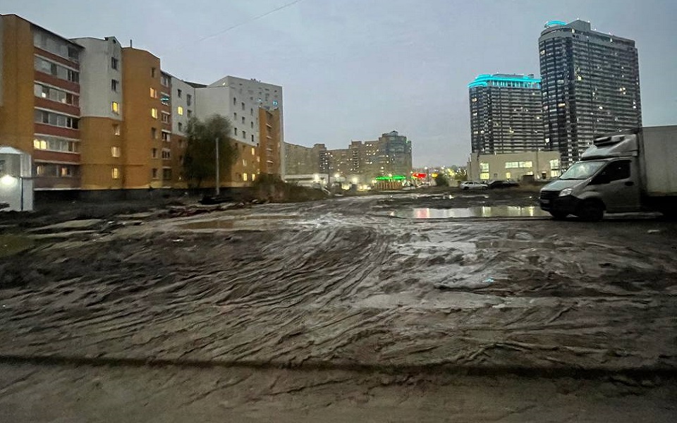 Пустырь расположен между домом №20 и бассейном РГУ. Весной и осенью он превращается в месиво грязи. В этом году на пустыре вели работы - раскапывали траншеи под трубы. Это усугубило ситуацию. Иногда пустырь используют в качестве парковки - в этом микрорайоне проблема с парковочными местами, - однако из-за грязи даже при дефиците мест не все рискуют оставить здесь машину.