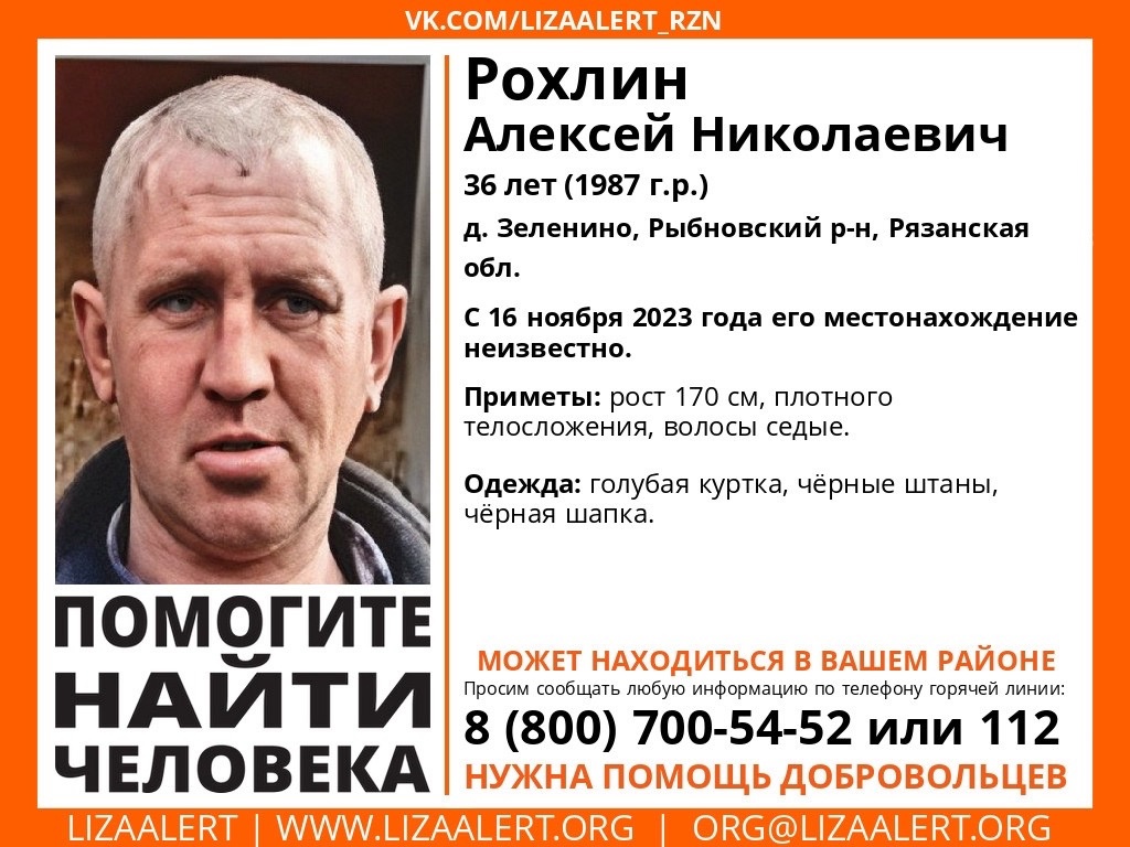 В деревне Зеленино Рыбновского района пропал 36-летний Алексей Рохлин. Об этом сообщает ПСО «ЛизаАлерт».