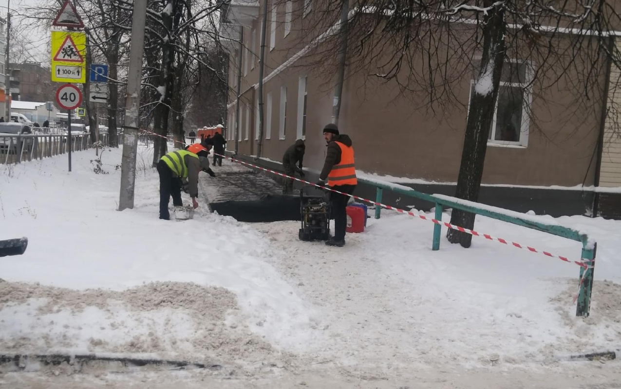 «Наша классика. Асфальт в снег», - пишет автор. Также уточняется, что работу выполняли у дома №1.