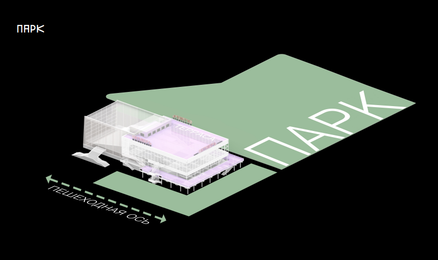 Представленный проект показывает, как может преобразиться здание и его окрестности. Так, авторы проекта предлагают разместить здесь коворкинг, сделать кафе, организовать выставочные пространства. В досуговом центре можно будет организовывать не только кинопоказы, но и концерты.