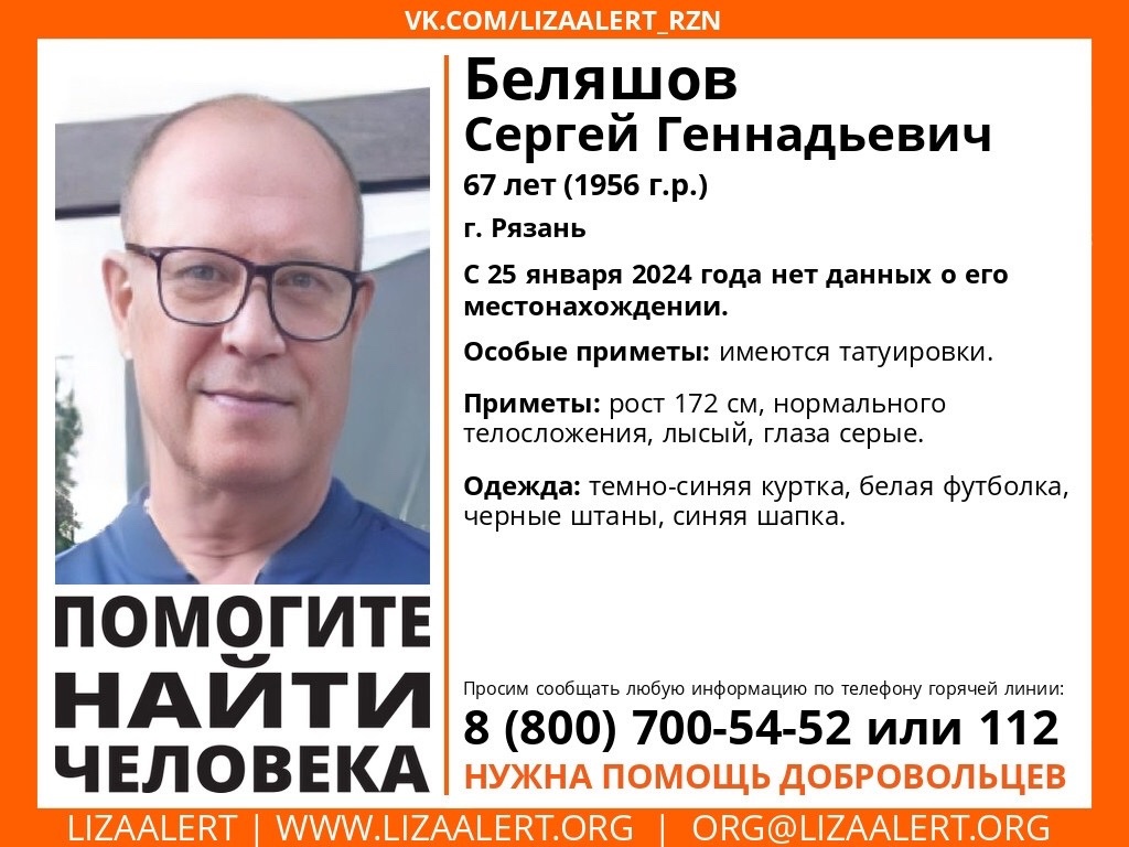 В Рязани разыскивают пропавшего 67-летнего Сергея Беляшова. Об этом сообщили в ПСО «ЛизаАлерт».