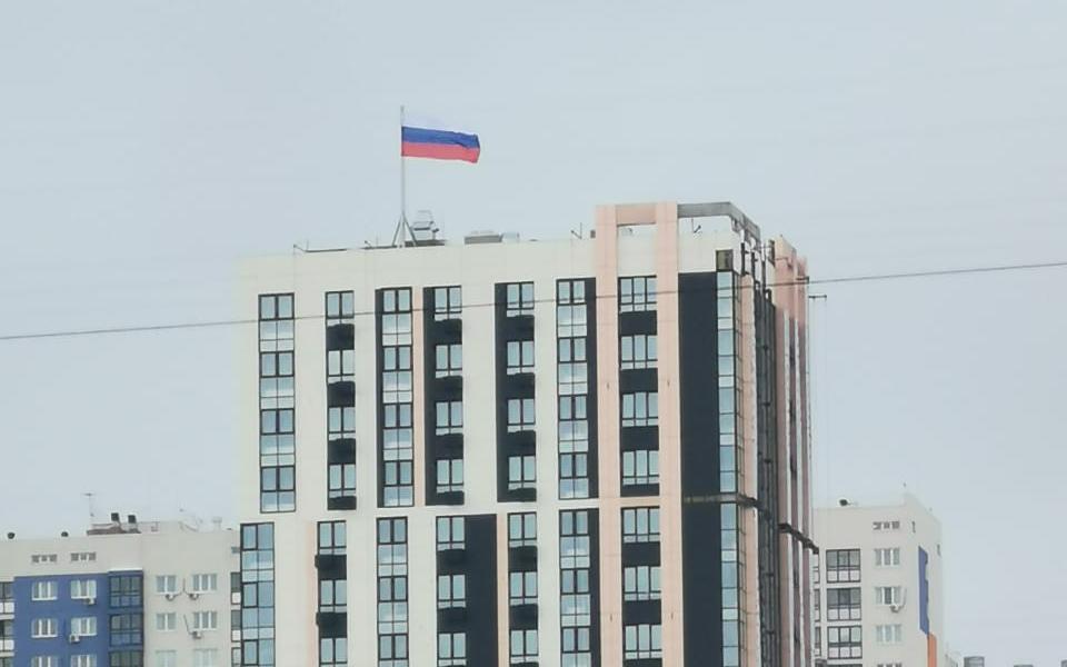 В Рязани появился рекордного размера для города флаг России. Его подняли над жилым комплексом iTower на Московском шоссе.