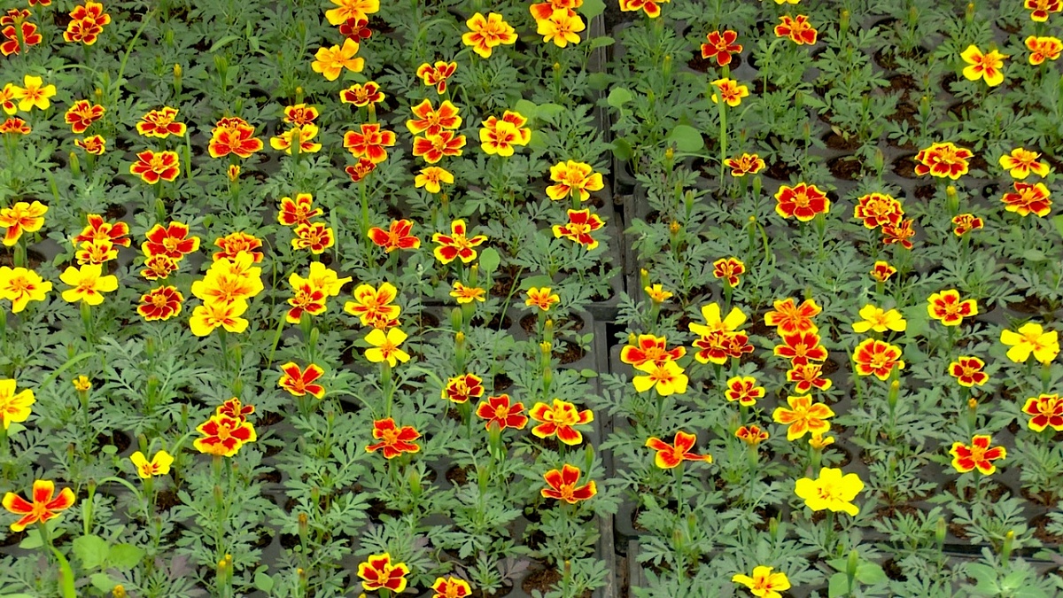 На данный момент посеяно более 430 тысяч рассады. В теплицах высажены цинерария, георгины, бархатцы, колеусы, иризинии, розы и другое.