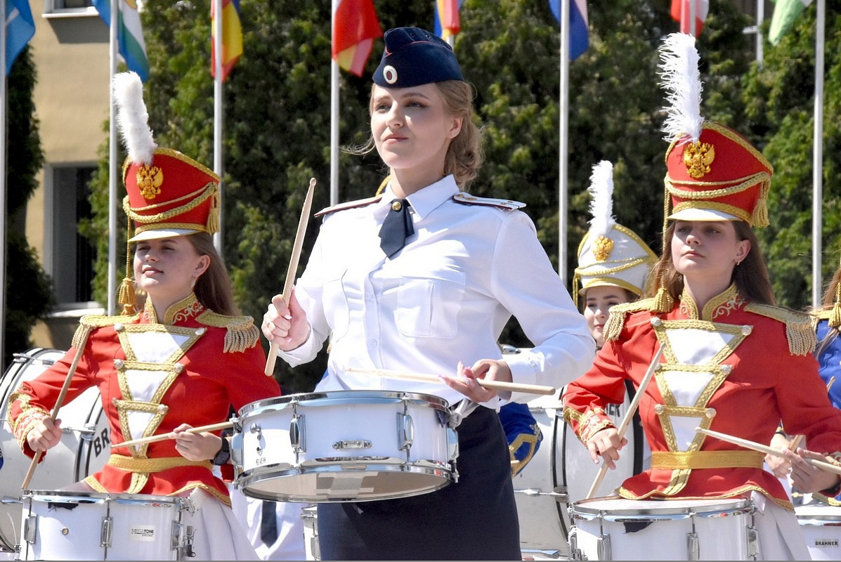 Выпускники станцевали на плацу лейтенантский вальс. Для гостей и офицеров выступил взвод девушек-барабанщиц.