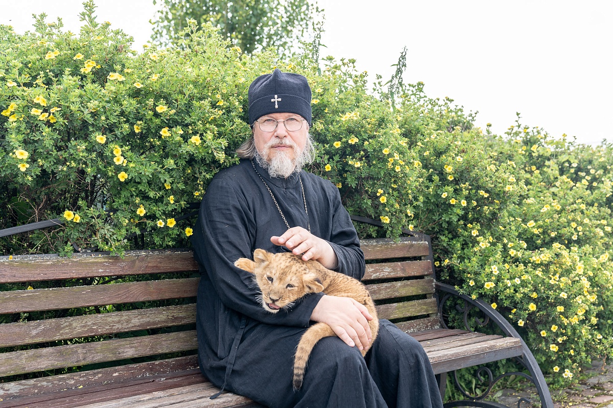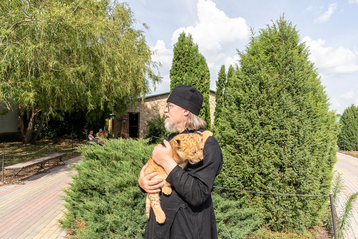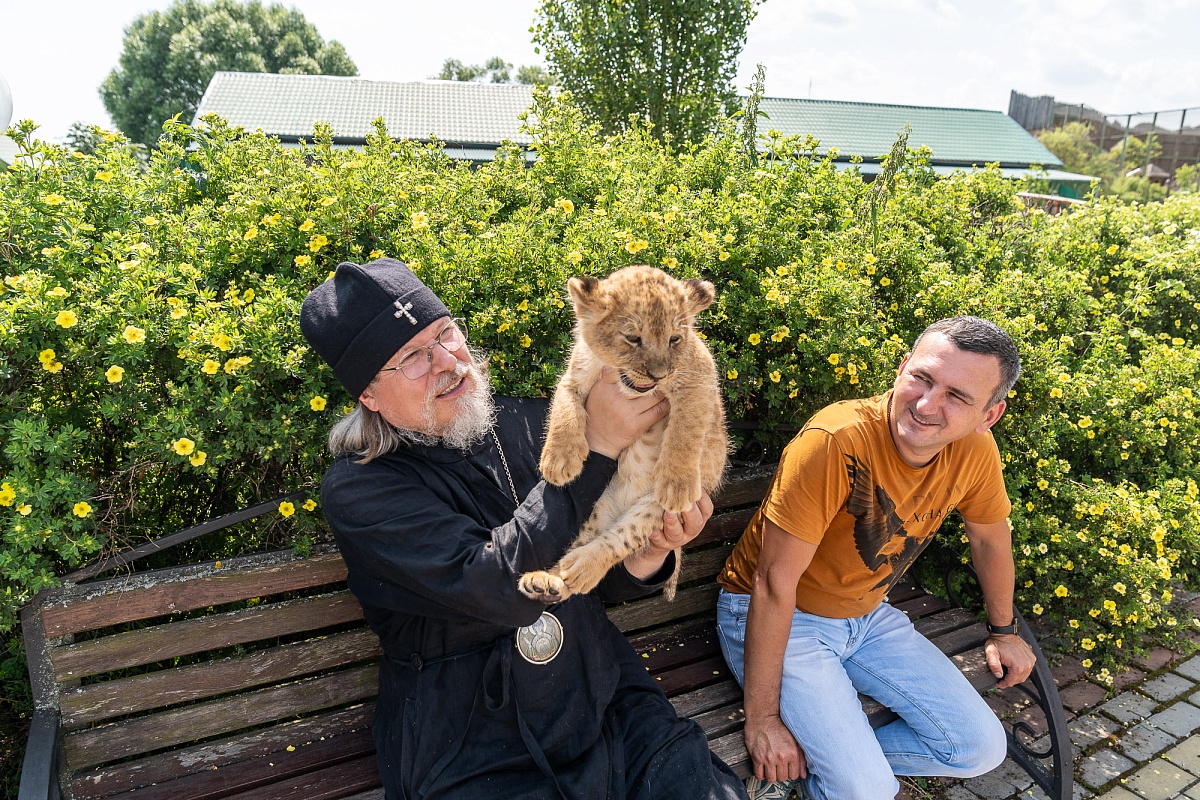 Событие вполне символическое: лев - один из символов апостола Марка, который является небесным покровителем владыки. Ряжский львенок, похоже, чувствовал себя в компании священника вполне комфортно: митрополит Марк носил малыша на руках, чесал за ушком, а в какой-то момент львенок, похоже, даже задремал, положив голову на ладони владыки.