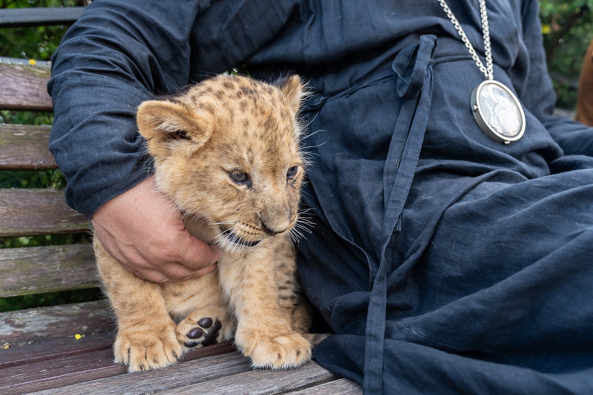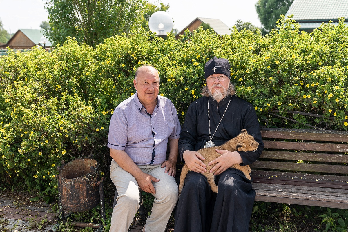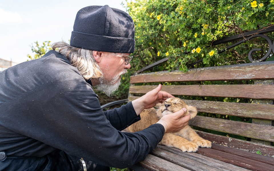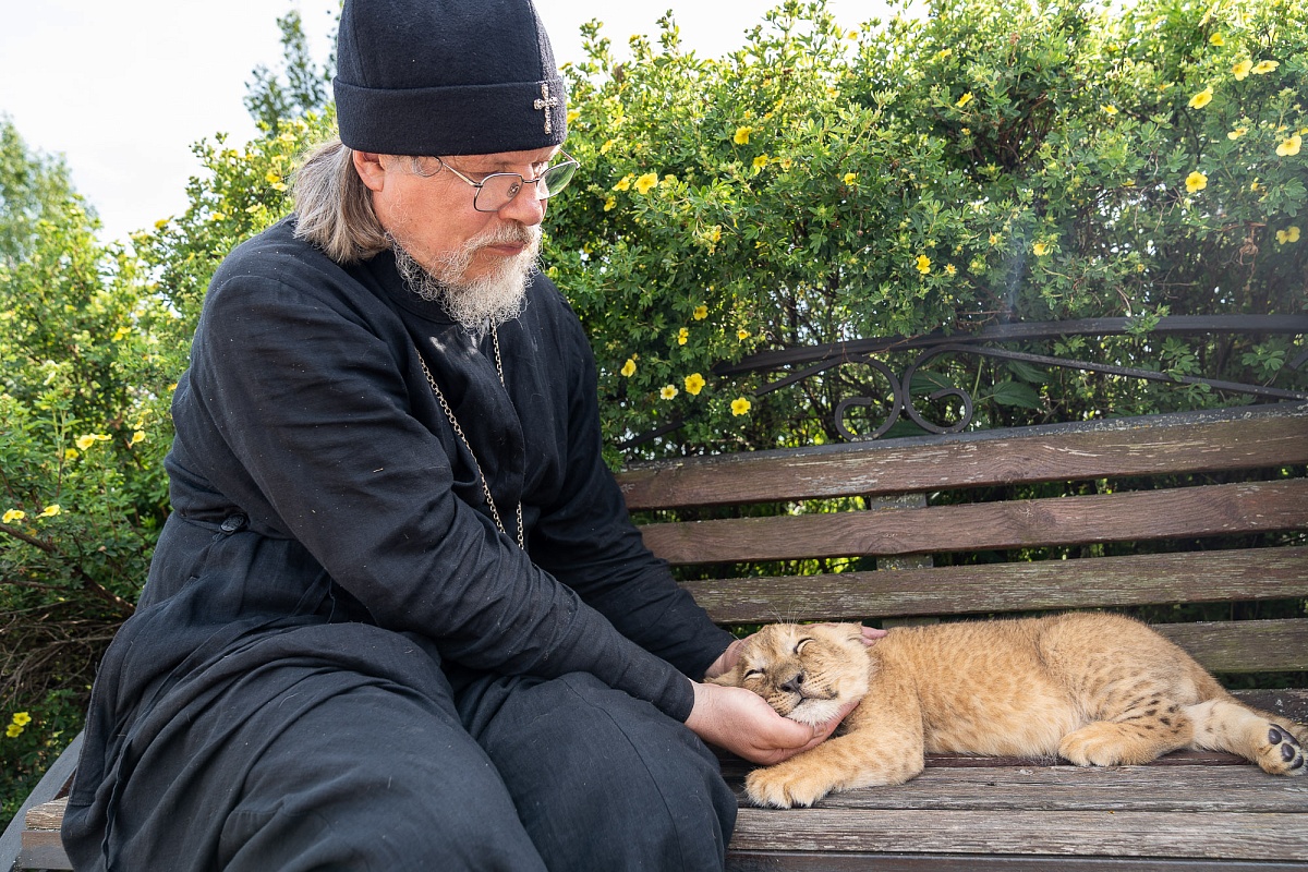 Событие вполне символическое: лев - один из символов апостола Марка, который является небесным покровителем владыки. Ряжский львенок, похоже, чувствовал себя в компании священника вполне комфортно: митрополит Марк носил малыша на руках, чесал за ушком, а в какой-то момент львенок, похоже, даже задремал, положив голову на ладони владыки.