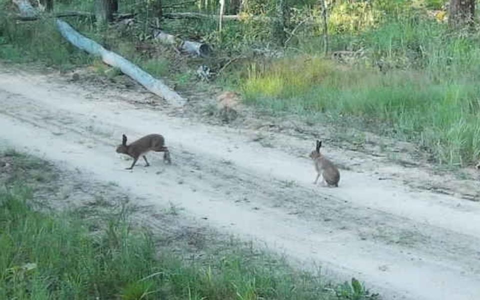 В Окском заповеднике в Рязанской области в фотоловушку попалось свидание двух зайцев. Об этом сообщили в паблике «Кабаны и другие звери».