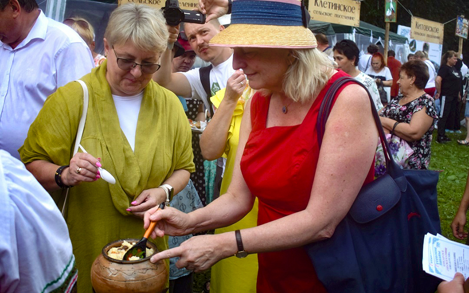 У палатки Крутоярского сельского поселения гостья попробовала кашу, которую готовят в этих местах.