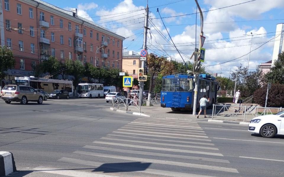 Утром в пятницу, 26 июля, в Рязани троллейбус выехал на тротуар и сбил светофор. Подробности инцидента сообщили в телеграм-канале stvchannel.