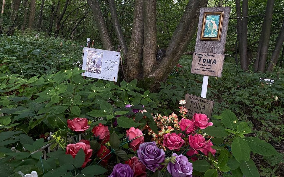 Кладбище, где находят свое последнее пристанище домашние питомцы, достаточно крупное. Здесь есть как свежие захоронения, так и забытые, заросшие травой и кустарниками.