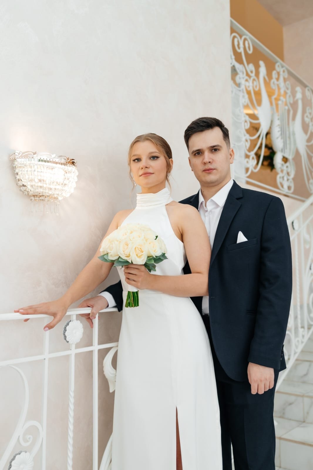 Женихи, как правило, менее склонны к экспериментам, чем их дамы сердца. Те, кто хочет сделать классический образ менее строгим, отказываются от пиджаков и примеряют спортивную обувь.