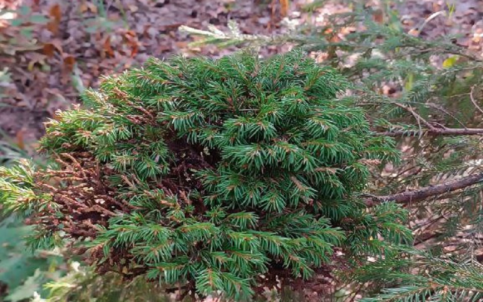 Необычное образование заметили на ели - кажется, что из ветки на большом дереве растет маленькое. Такой эффект дает аномальный морфогенез. В народе можно услышать другие названия - "ведьмина метла", "громовое помело", "вихорево гнездо".