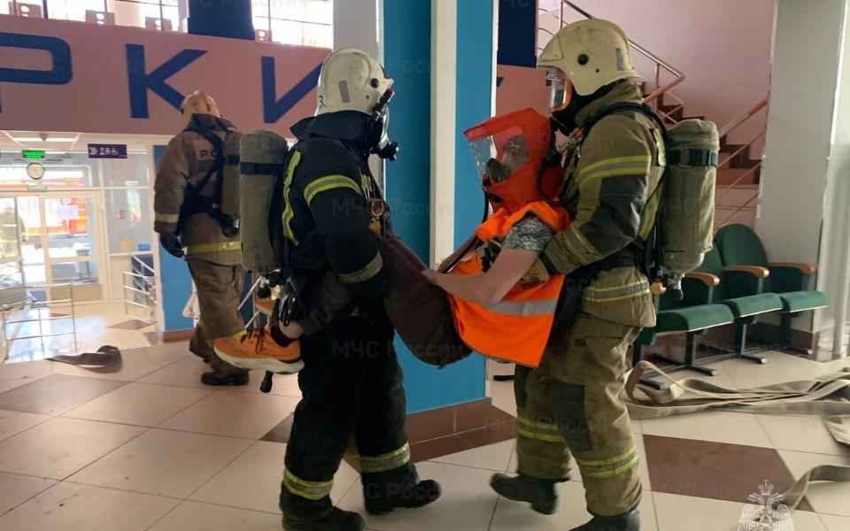 По плану учений, в технопарке якобы произошло короткое замыкание, которое привело к возгоранию токарного станка. Пожарные отрабатывали тушение пожара, спасение пострадавших и эвакуацию посетителей и работников учреждения.