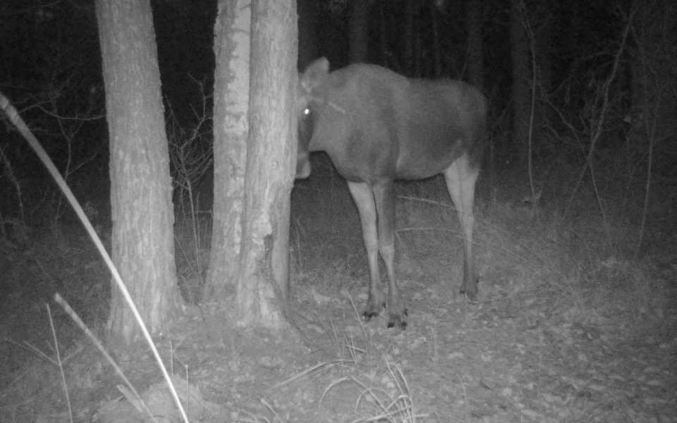 Сотрудники Окского заповедника, расположенного в Рязанской области, поделились очередными кадрами с фотоловушек, установленных в укромных уголках леса. Теперь в кадр попал молодой лось.