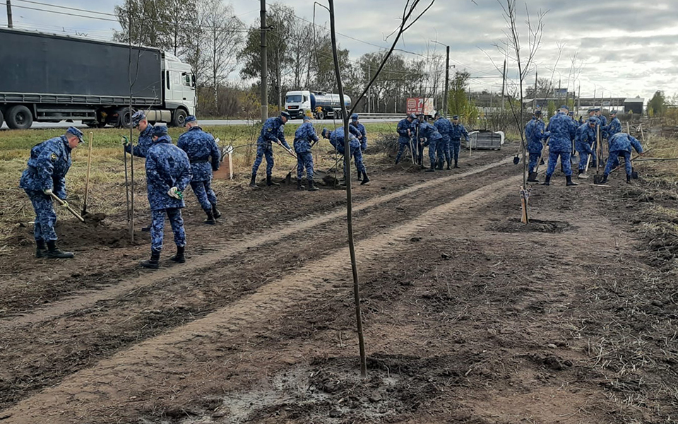 Липовую аллею продолжили высаживать курсанты Рязанского филиала Московского университета МВД имени В.Я. Кикотя и Академии ФСИН России.