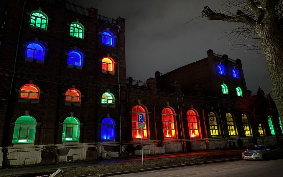 С началом реконструкции на здании хлебозавода № 1 в Рязани появилась подсветка.
