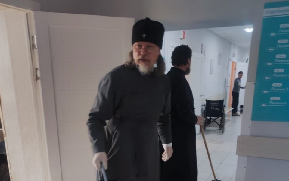 Владыка моет полы в больничном коридоре. Для тех, кто следит за жизнью Церкви в Рязанской области, история не новая - управляющего епархией видели за этим занятием не один раз на протяжении нескольких лет. Священник Димитрий Фетисов добавляет, что владыка уже не первое десятилетие выбирает для себя такое времяпрепровождение - помогать санитарам он начал еще во время служения в столице.