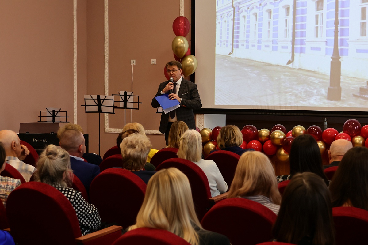 Здание расположено на улице Соборной. Школьников приветствовали представители правительства региона администрации города. Корпусы гимназии построены в 18, 19 и 20 веках. Реконструкция помогла сделать помещения комфортными и современными, но не потерять исторических особенностей старинной архитектуры.