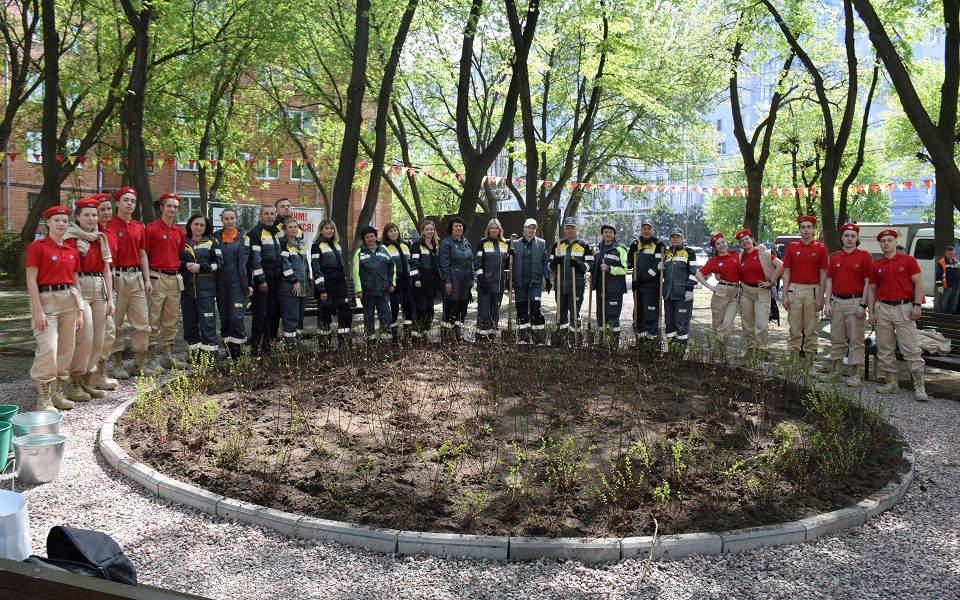 В сквере в честь юбилейной даты посадили около 350 деревьев и декоративных кустарников. Аллею Славы украсят гортензии, спирея, кизильник - они расцветут уже скоро, а через несколько лет поднимутся ввысь и саженцы лип, давая густую тень и наполняя воздух в июне нежным ароматом.